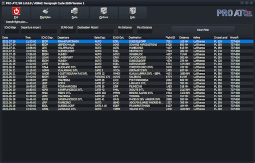 - Die Datenbank kann durch den Import von AIRAC-Daten aktualisiert werden (Navdata-Pro or Navigraph).